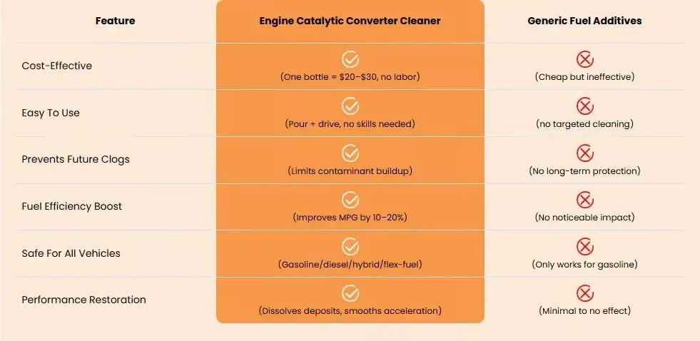 Cheap cleaners only remove existing deposits—they don’t stop new ones from forming, leaving you back at square one in months. This cleaner’s formula avoids clogging reoccurrence: it limits future contaminant buildup in the catalytic converter and related parts, so you won’t need frequent cleanings. It’s not just a quick fix—it’s long-term protection for your engine.